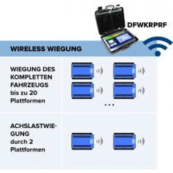 Kabellose Radlastwaage WWSE10TRF Übersicht Details Technische Daten Downloads Kabellose Plattformen um Fahrzeug- Achslastwägestationen zu realisieren, um die Unbequemlichkeit der Verbindungskabel zwischen Plattform und Anzeige zu vermeiden. Besonders geeignet für die Wiegung von großen Fahrzeuge (Sattelzüge, Tanklastwagen etc); hohe Genauigkeit bei großer Stabilität. Eichung Die geeichten Plattformen sind wie folgt einsetzbar: - Als Systemen mit Einzelplattform, die für die Wiegung von Fahrzeugen nicht benutzt werden. - Als Radlastwägesystem die Anzahl WWS Plattformen entsprechen der Anzahl Fahrzeugräder. - Als Achslastwägesystem bestehend aus einem oder mehreren WWS Plattformpaaren (Außer eventuelle Anwendungsbegrenzungen, die von den Vorschriften der Europäischen Staaten abhaengen). OPTIONEN UND ZUBEHÖR Hochauflösende Ausführung für die innerbetriebliche Anwendung. 3590EKR Gewichtsanzeige oder DFWKRPRF-2 Abgleichmodule für die Achslastwägung (einschließlich Anschluss-Bausatz und Befestigung). Auf-/ Abfahrrampen. Details Eigenschaften: Abmessungen: 750 x 561 mm. Höhe: 58 mm. Gewicht: ca 28 kg. Ladefläche: 750 x 450 mm. Robuste Bauweise aus speziellem Aluminium mit geringem Gewicht und hoher Widerstandsfähigkeit bei rauhen Arbeitsbedingungen. IP68 Schutzgrad. Gewichtsanzeige in die Plattform integriert und geschützt durch IP68 hermetischen Kasten. Serienmäßiges Funkmodul für Übertragung des Gewichts an die Fernanzeige oder an ein externes Gerät. Räder für Transport der Plattform. Präzise und zuverlässig. P68 Edelstahl Wägezellen. Stromversorgung: interner wiederaufladbare Akku (Betriebsdauer ca. 40 h), geschützt durch hermetischen Kasten, und Ladegerät, serienmäßig. Antirutschgummi unter der Plattform sorgt für festen Halt auf allen Oberflächen. Die WWS Plattformen sind patentiert unter der Nummer: 1.342.302. Eichfähig nach CE-M. Eichung bei eichfähigen CE-M Plattformen: Der Ziffernschritt bezieht sich auf das Gewicht der einzelnen Plattform. Der Ziffernschritt, der bei den Radlastwaagensystemen (4 Plattformen) angezeigt wird, ist gleich der Summe der Ziffernschritte der einzelnen Plattformen, aber aufgerundet. Nur wenn ein Fahrzeug mit allen Rädern auf der Waage steht, ist das System eichfähig. Technische Daten Artikelnummer 34.021.2 Lieferzeit 2 Wochen Wägebereich (max) 10000 kg Anzeigegenauigkeit 5 kg Eichwert 5 kg Plattformgröße 750 x 450 mm Eichung geeicht, nicht eichfähig Eichklasse III Schutzklasse IP IP68 Anwendung / Wägemodi Achslastwägung, Radlastwägung, Anzeige des Gewichtswerts jeder einzelnen Plattform oder der Gesamtsumme, Berechnung der Schwerpunktes, dynamisches Wiegen Wägeeinheiten kg Kleinstes Stückgewicht (zählen) Nein Display / Anzeige Anzeigegerät DFWKR: Kontrastreiches , hinterleuchtetes LCD-Display mit 6 Ziffern, Höhe 25 mm und Statusanzeige, eingebaut in Transportkoffer mit Drucker Betrieb Interner, wiederaufladbarer Akku (min. 10 Std. Betrieb, Aufladung 8 Std.) mit serienmäßigem, externen Ladegerät 12 VDC/230 VAC Schnittstellen RS232 Eichkosten 35,00 € DAkkS Preis 200,00 € Tastenfeld / Tastatur Anzeigegerät DFWKR: Feuchtigkeitsgeschützte Tastatur mit 17 Numerischen- und Funktionstasten, serienmäßig mit Funkmodul und entsprechender Software. Kalibrierung / Justierung externe Justierung Tarabereich Nein Betriebstemperaturbereich -10°C - +40°C Downloads zum Artikel: DATENBLATT_WWSERF.PDF ‹ › × 34.021.2 Artikelnummer: 34.021.2 EUR 1.728,00 € Zzgl. 19% MwSt. Weitere Modelle Menge Auf die Angebotsliste